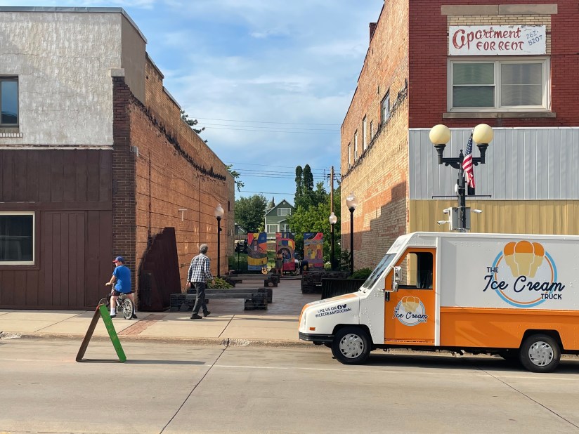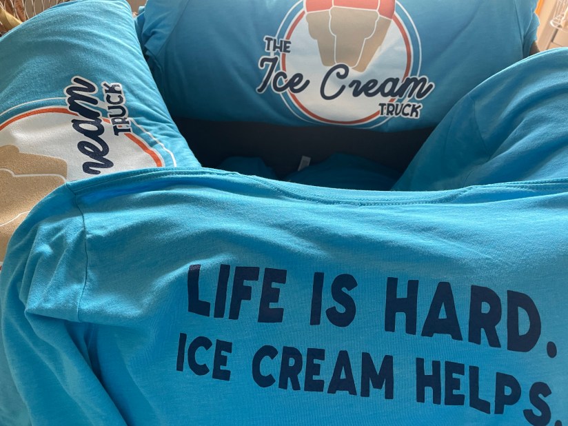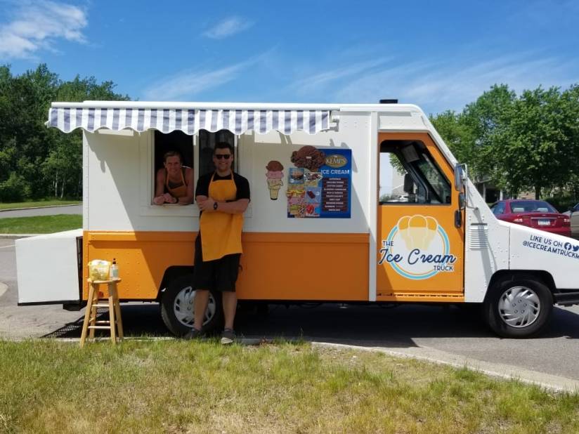 Trent and Janelle Janezich pose with their boys Charlie, 10 and Brady, 13 outside of “The Ice Cream Truck” a new family venture they started at the beginning of the summer. The family travels to community events and festivals offering a wide selection of frozen treats.