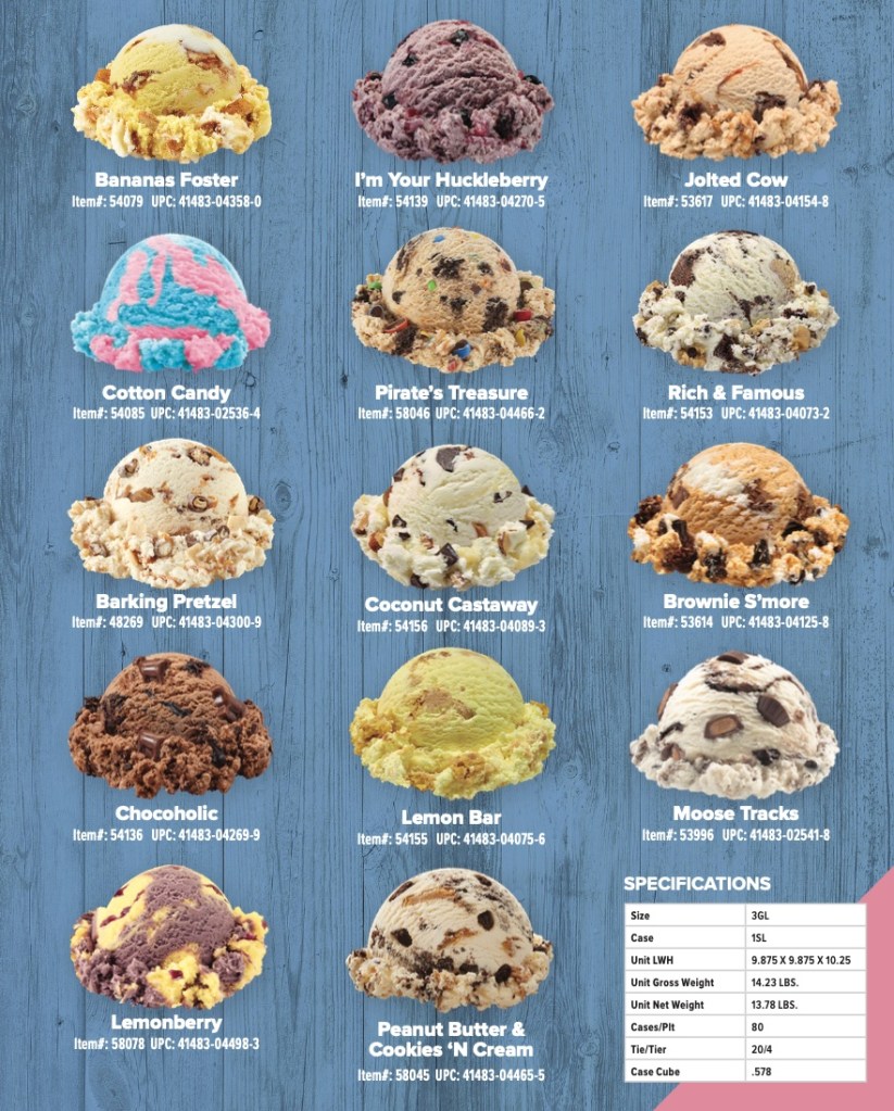 The time has arrived! We are starting to see some of the new flavors that are going to be on the truck this season! Just to get your mouth watering….here are three new selections! Which one will you try? Don’t forget about all the best sellers though….just look at those! Oh how I missed you Peanut Butter Cookies and Cream!! Oh, and hello Rich and Famous….!